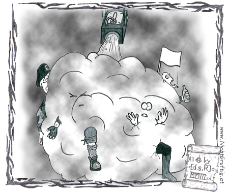 Nachdem das Monastery seine Pforten geschlossen hatte gab es für mich keinen Grund mehr NeoFolk-Veranstaltungen beizuwohnen, dementsprechend nichtexistent ist mein Wissen ob es immer noch Gang und Gebe ist die Nebelmaschine bis zum Anschlag aufudrehen und mindestens einmal den Tank nachzufüllen. An Anekdoten zu dem Themna hätte ich den einen Abend mit der „neuen“ Mischung die „ein bisschen“ entflammbar war und das Zigaretten anzünden zu einem Abenteuer gemacht hat. >_<